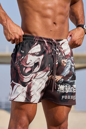 DESIGN: Unleash your inner Titan with these "Attack on Titan" mesh shorts. Crafted for ultimate comfort and breathability, these shorts feature a striking design inspired by the iconic anime series. The detailed graphic showcases a fierce Titan, adding a bold statement to your casual or workout attire.