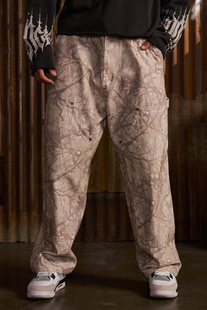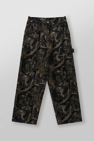 DESIGN: These YoungLA Tree Camo Jeans bring a rugged, street-ready vibe to your look. Made from twill fabric with a baggy carpenter fit, they’re built for comfort and durability. The unique tree camo print comes in three earthy shades, giving you options to match your style. Logo-embossed buttons add a signature touch.