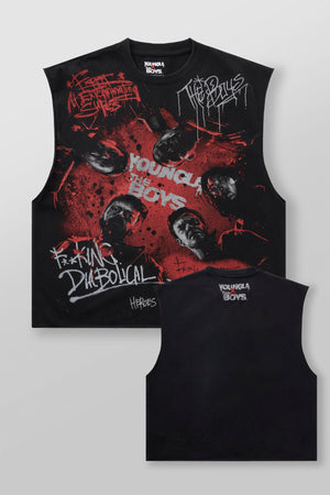 DESIGN: The Boys Cut-Offs – a raw, no-rules piece straight from the front lines of streetwear and chaos. This one’s built for the bold, featuring a wild all-over graphic with some of The Boys’ most unhinged faces, gritty text hits, and rebellious energy from top to bottom.