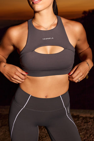 DESIGN: This bra features smooth brushed fabric that feels soft against the skin while providing compression, more coverage and a medium support. Removable pads offer customizable coverage, and the open keyhole back adds a touch of breathability and modern style. Whether you're hitting the gym or the track, this bra supports every stride, lift, and jump.