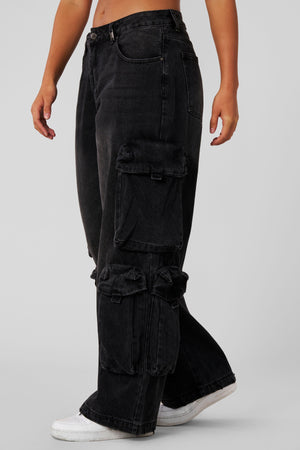 DESIGN: Designed with unique cargo pockets and an oversized fit, these jeans blend streetwear edge with everyday comfort. Featuring hidden waistband adjusters for a customizable fit, they’re as functional as they are stylish. Tall girl friendly with an elongated inseam. Pair with sneakers or heels for a bold, effortless look.
