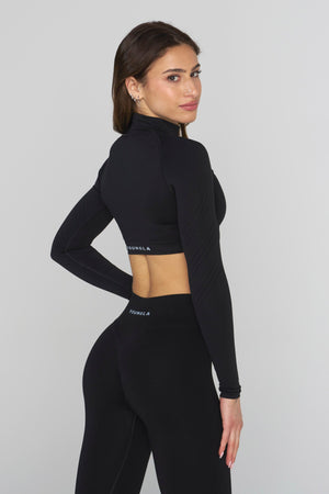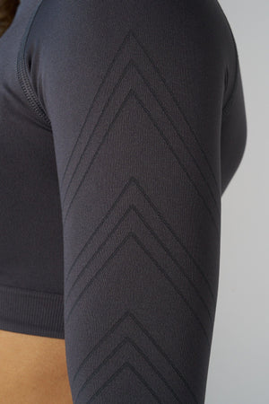 DESIGN: Introducing our Seamless Curve Long Sleeve Crop Compression Shirt. Designed for both style and performance, this shirt features muscle-enhancing details on the sleeves for added definition. Perfect for workouts, it offers a second-skin fit with maximum compression and support.