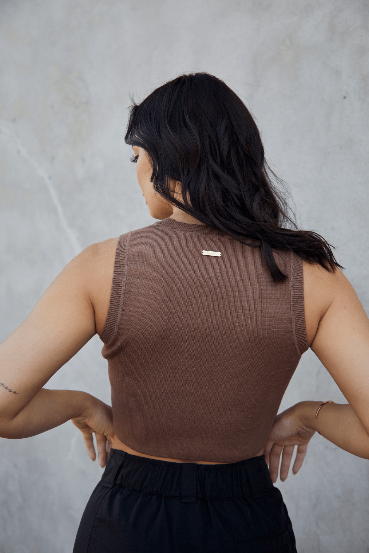 DESIGN: Cozy up to autumn in style and comfort. Crafted with high-quality knit fabric, this crop tank comes in warm, earthy hues for a chic seasonal look. Perfect with high-waisted bottoms. Comes with a YoungLA gold plated logo.