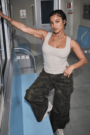 DESIGN: Simple, stylish, and versatile, this Afterdark Tank is a wardrobe essential that combines comfort with timeless appeal. The subtle texture of the ribbed fabric adds a touch of elegance to this classic piece, making it perfect for layering or wearing on its own.