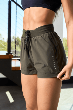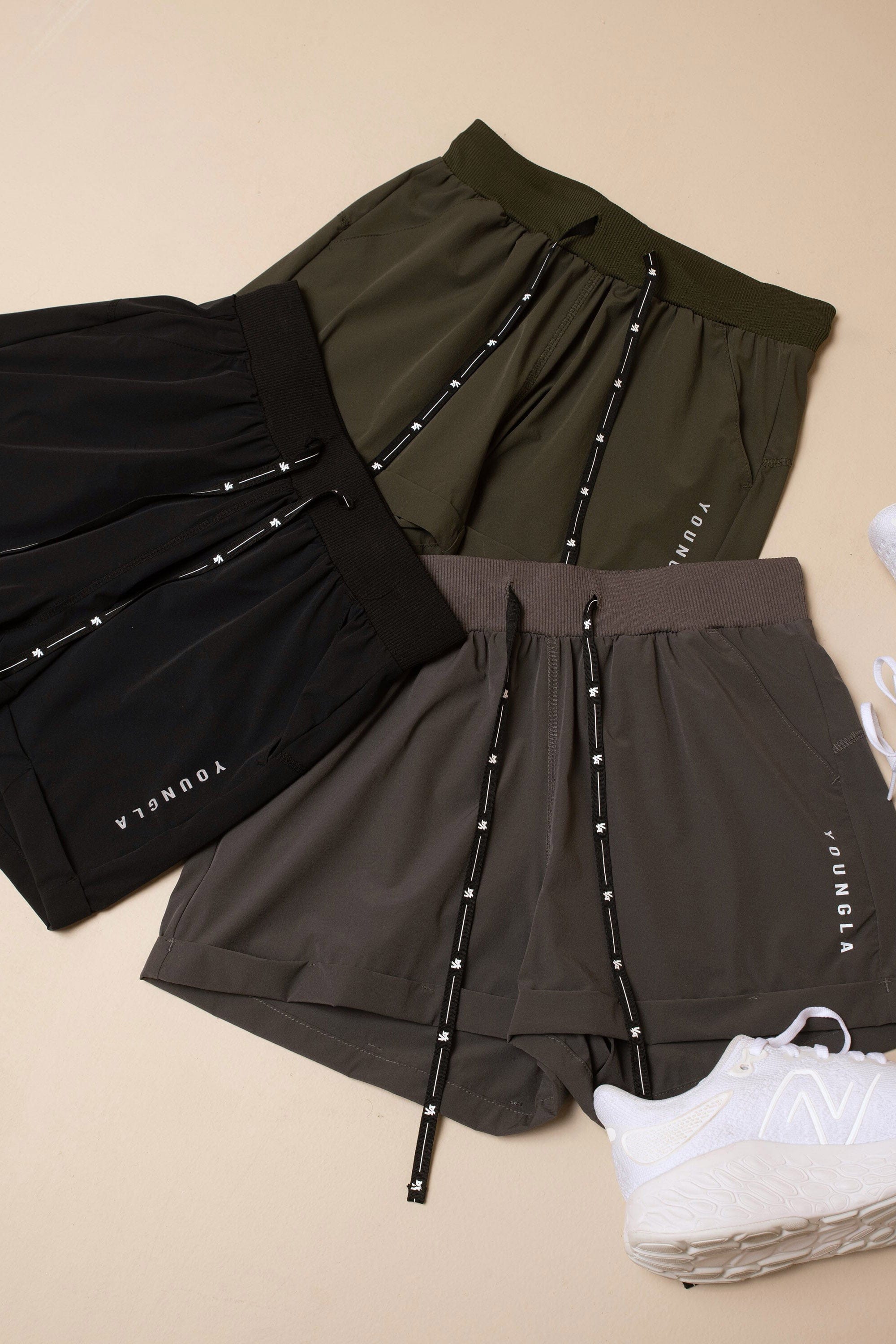 DESIGN: These running shorts are made of a light breathable fabric and they come with deep pockets that will fit all of your running necessities. These running shorts have a great supportive and comfortable waistband with youngla logo drawstrings. Perfect running shorts to add to your closet they come in black, dary grey, and forest green.