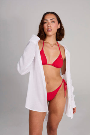 DESIGN: Complete your beach look with our stylish Cover Up! Lightweight and airy, this cover-up features a versatile design perfect for transitioning from the beach to a casual outing. Pair it with our Triangle Bikini set for a coordinated, chic summer outfit.