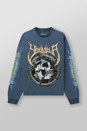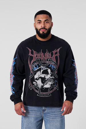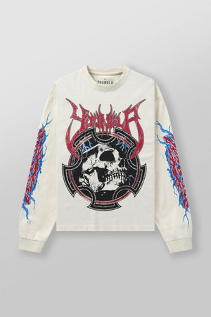 DESIGN: The Outcast Long sleeves feature striking distressed graphics on the chest and sleeves, creating a bold, grungy aesthetic. The relaxed fit makes it a versatile piece for casual wear with an unmistakable edge.