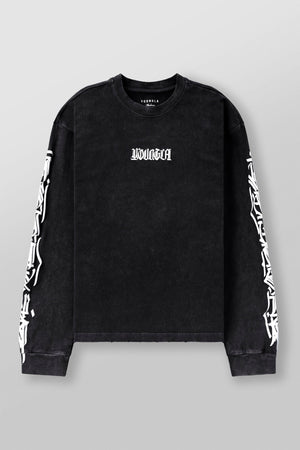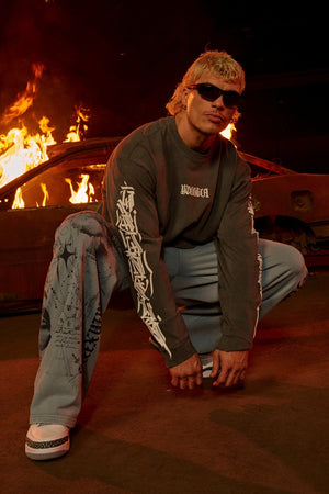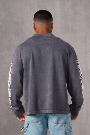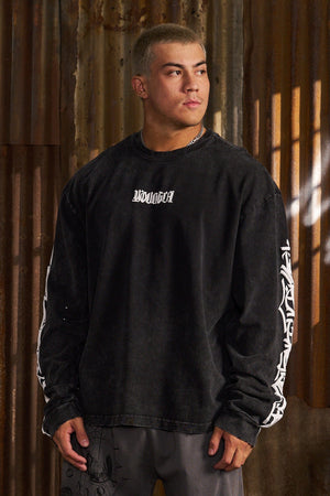 DESIGN: Elevate your style with these long sleeve tees, featuring distressed details on the cuffs and hem for an effortlessly rugged vibe. The acid wash treatment gives it a vintage edge, while the bold puff-printed calligraphy runs down each sleeve for an eye-catching finish.