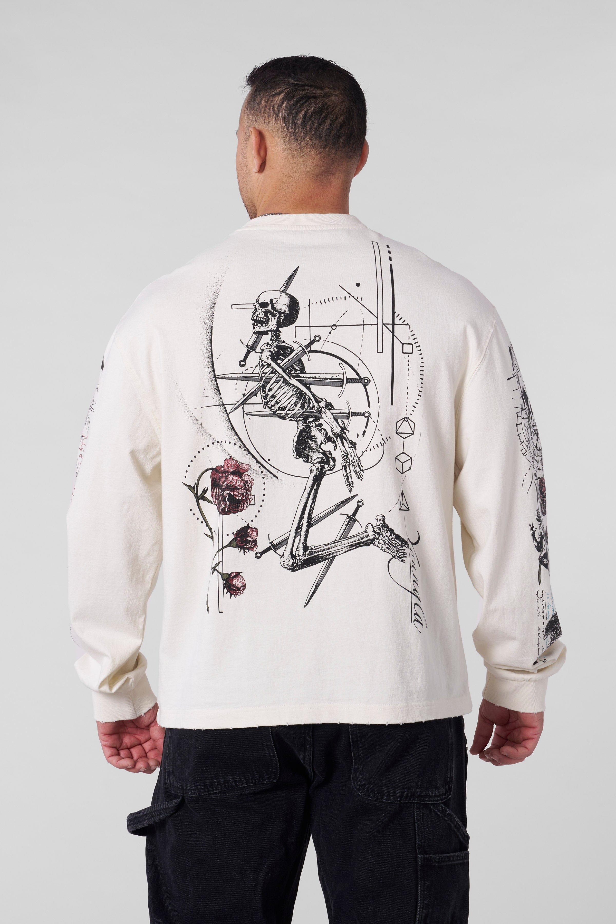 DESIGN: Crafted from 100% heavyweight cotton (270 GSM) for a premium feel and lasting comfort. Featuring intricate occult-inspired graphics on the chest and sleeves, this piece merges streetwear edge with artistic expression.