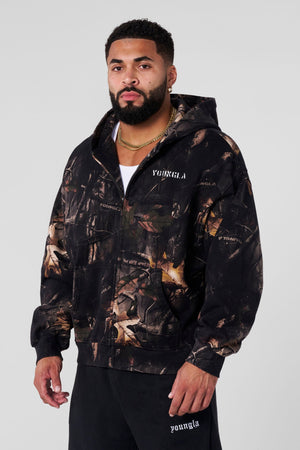 DESIGN: The Tree Camo Zip Up is built for versatility. With a structured hood, durable zipper, and roomy fit, it’s both functional and stylish. Crafted from 420 GSM terry, it’s substantial without feeling heavy, making it the perfect layering piece for year-round wear.