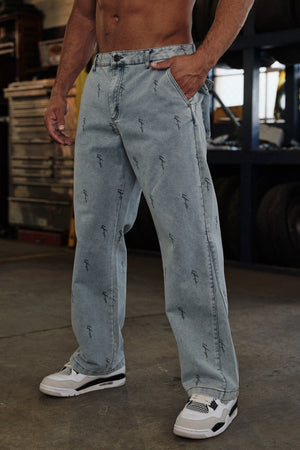 DESIGN: Stay laid-back and stylish with these Simple Baggy Jeans, designed with a comfortable fit and signature jacquard logo detailing throughout. Available in blue and black washes, they’re ideal for creating everyday outfits.