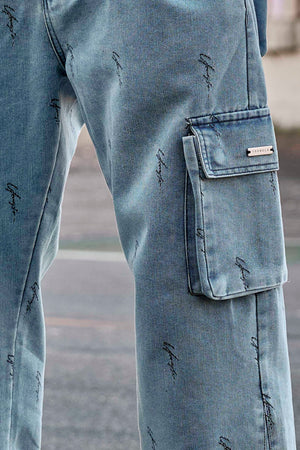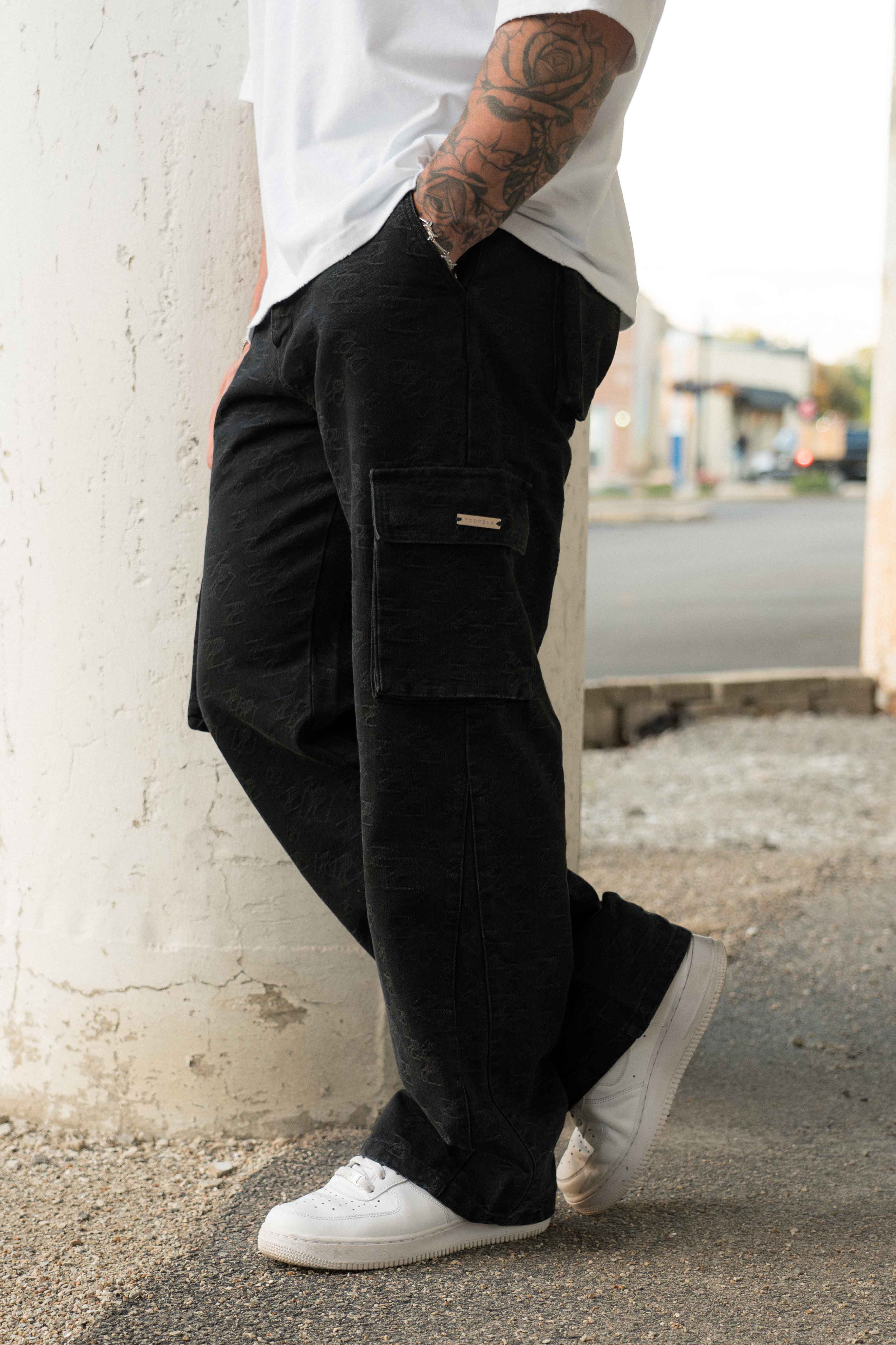 DESIGN: Discover the perfect blend of style and comfort with our Cargo Baggy Jeans, showcasing a jacquard logo pattern. The streetstyle fit provides a relaxed, baggy look that's perfect for casual wear. The metal tag on the pocket flap adds a distinctive touch to these fashionable jeans.