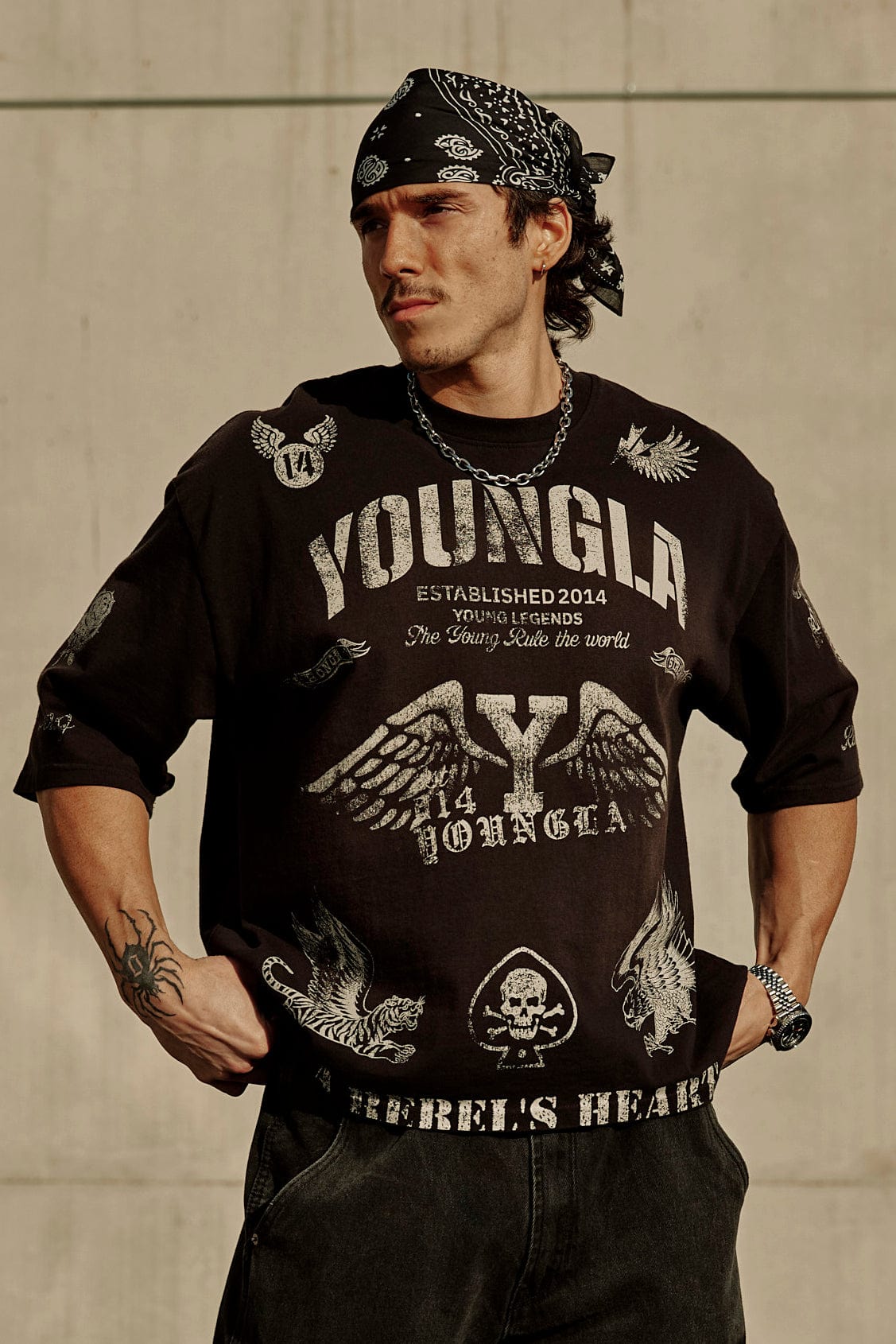 DESIGN: The Rebel Tees bring a bold vintage edge to your look. Made from 100% cotton, this tee features distressed raw edges and an all-over vintage graphic print for an effortless, worn-in feel. Designed for those who embrace rebellion, style, and movement.