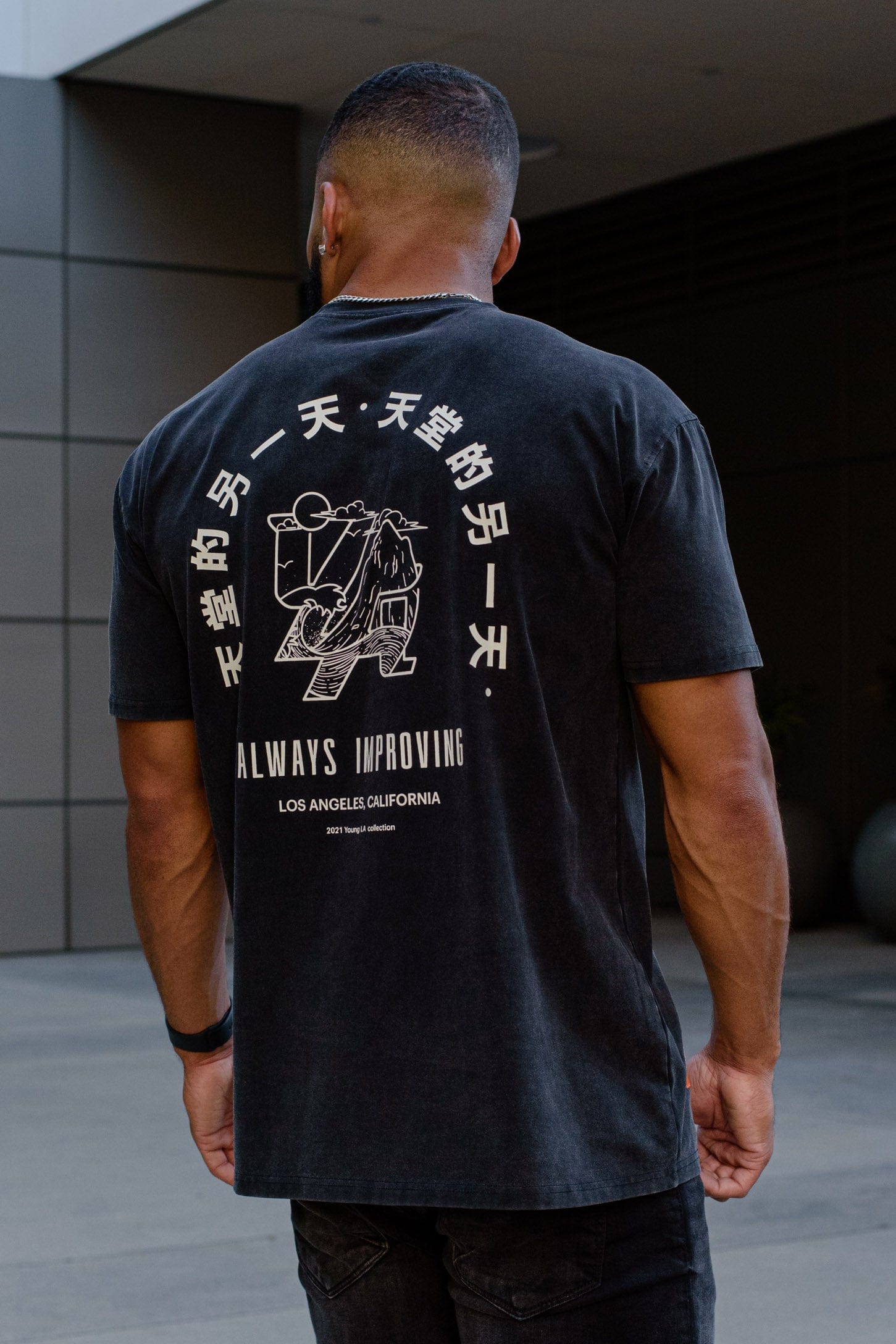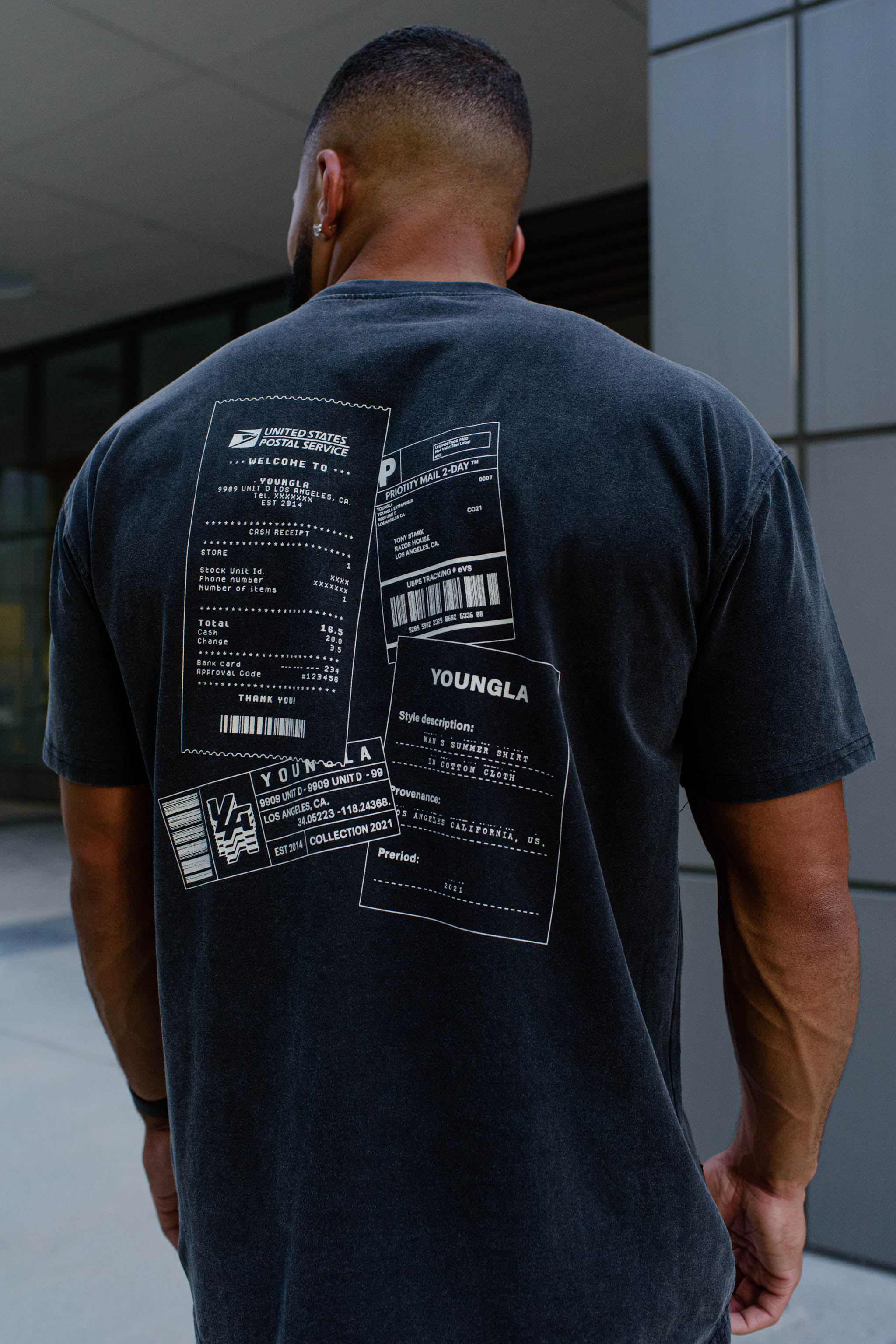 DESIGN: Introducing the drip tees. These shirts have class of their own. Made with super soft and stretchy fabric. Straight-cut bottom with orange woven tags right above the hemline. Four unique prints pressed right on muted black wash garment. The fitting is similar to 409 Jacked Tee, tailored to make your top look wider and aesthetically attractive.
