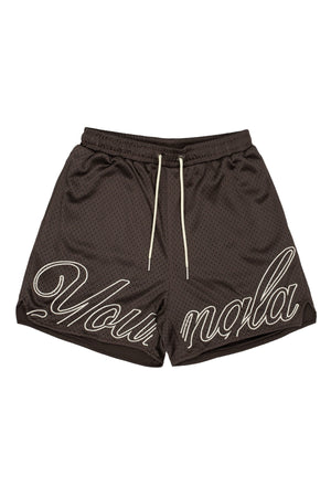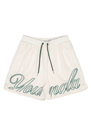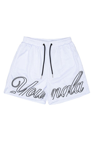DESIGN: The YoungLA championship shorts. Made with our best-selling soft mesh fabric. These shorts come in a variety of colors so you can mix and match them with any t-shirt. Features include a double layer mesh fabric, elastic band with adjustable cords, 2 front and 1 back pocket, and YoungLA embroidered across the hem line.