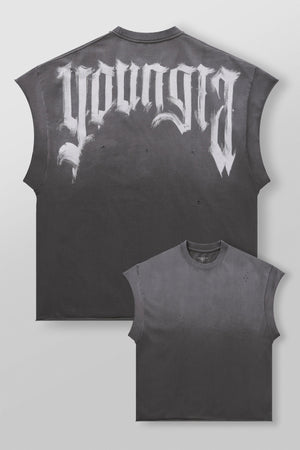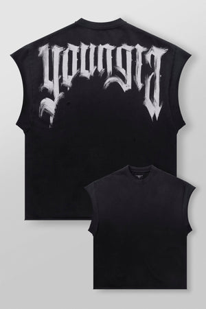 DESIGN: Crafted from 100% cotton with a substantial 290 GSM weight, this cut-off tank delivers both structure and comfort. Designed with a drop shoulder fit, it features a washed effect on the upper half and bold YoungLA branding printed across the back. A clean yet rugged look, perfect for everyday wear or training.