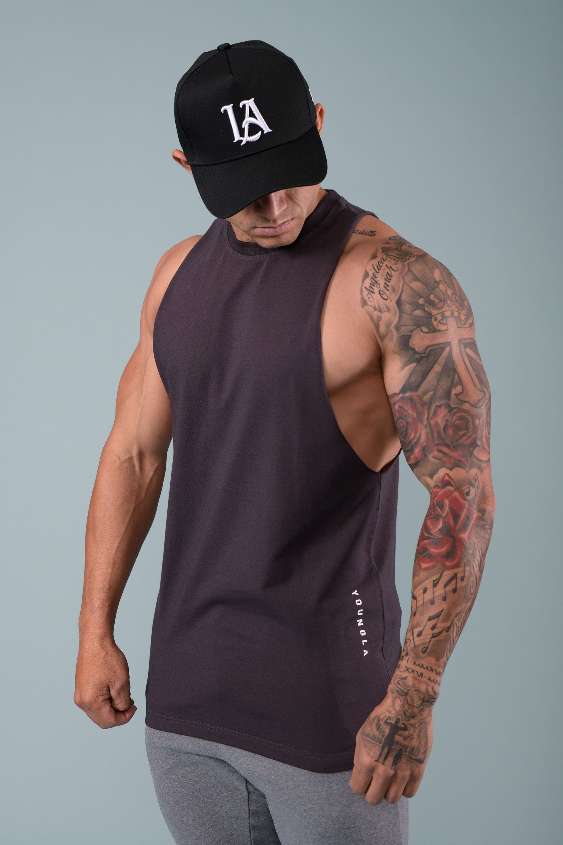 DESIGN: Introducing the delt tanks. Cut deeper on the shoulders to showcase the delts from all angles. They are made with soft cotton and stretchy lycra fabric, straight bottom hem cut, YoungLA high-density logo on the bottom, and YLA logo on the back.