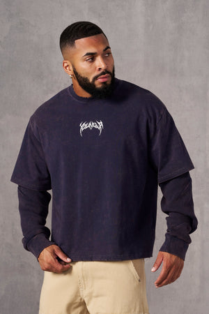 DESIGN: Introducing the Shadow Twofer Long Sleeve—a unique fusion of style and texture. Crafted from soft cotton, it combines a vintage acid-washed body with cozy thermal under-sleeves for added warmth. Featuring distressed cuts on the collar and hem, this twofer delivers a bold, worn-in look that stands out.