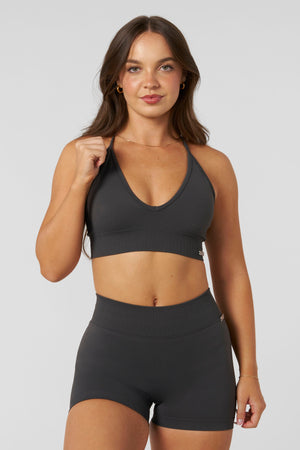 DESIGN: Meet your new favorite Medium Impact Bra, designed in our ultra-soft new seamless fabric for a sleek, barely-there feel. The deep V-neckline adds a flattering touch, while contouring panel details enhance your natural shape. With removable padding for customizable coverage and support, this bra is perfect for movement or lounging—where style and function go hand in hand.