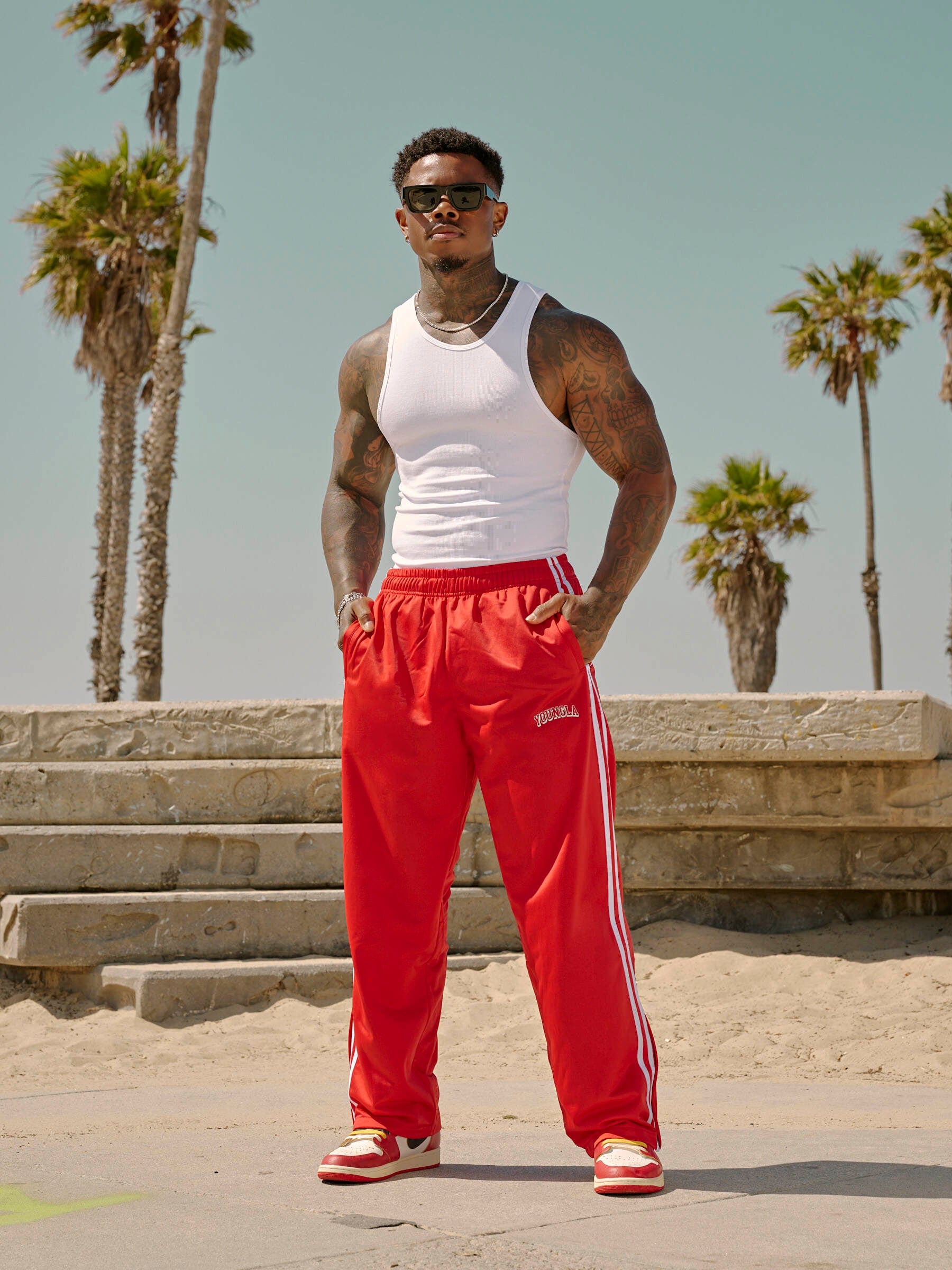 DESIGN: The Retro Warm-Up Track Pants bring back classic athletic style with a modern twist. Made from lightweight polyester, these loose-fitting pants feature dual side stripes and zippered cuff openings for easy on-and-off over sneakers.