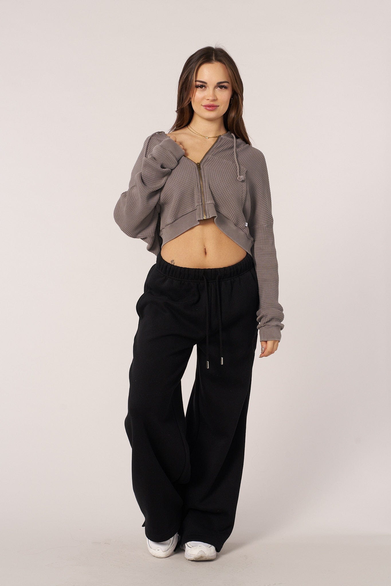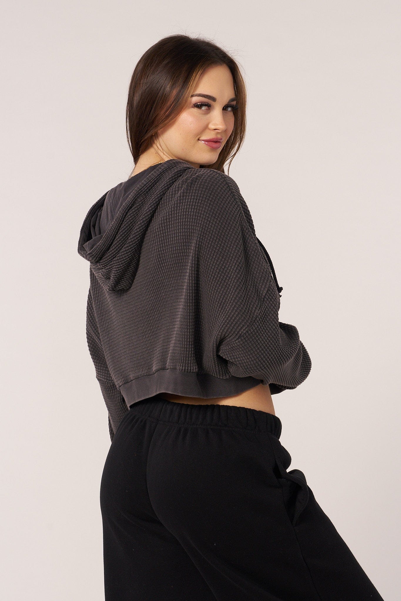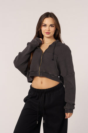 This cropped oversized zip-up is made from 100% cotton in soft, washed colors for a lived-in look. This cozy, textured essential features a relaxed, cropped fit and full-zip front, perfect for layering with effortless style. Perfect for chilly summer days